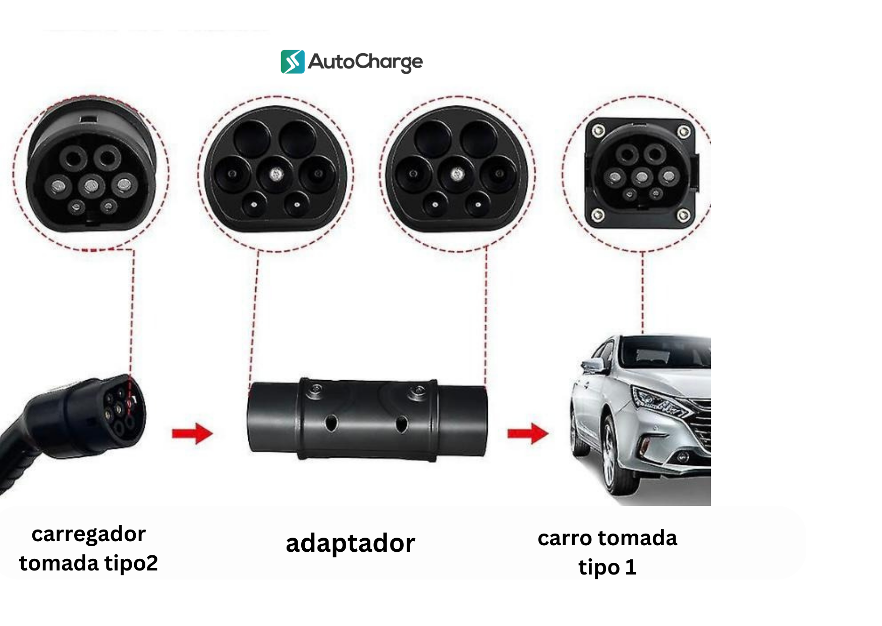 Carregue seu veiculo de tomada tipo 1 em carregadores tipo 2 através de nossos adaptadores.